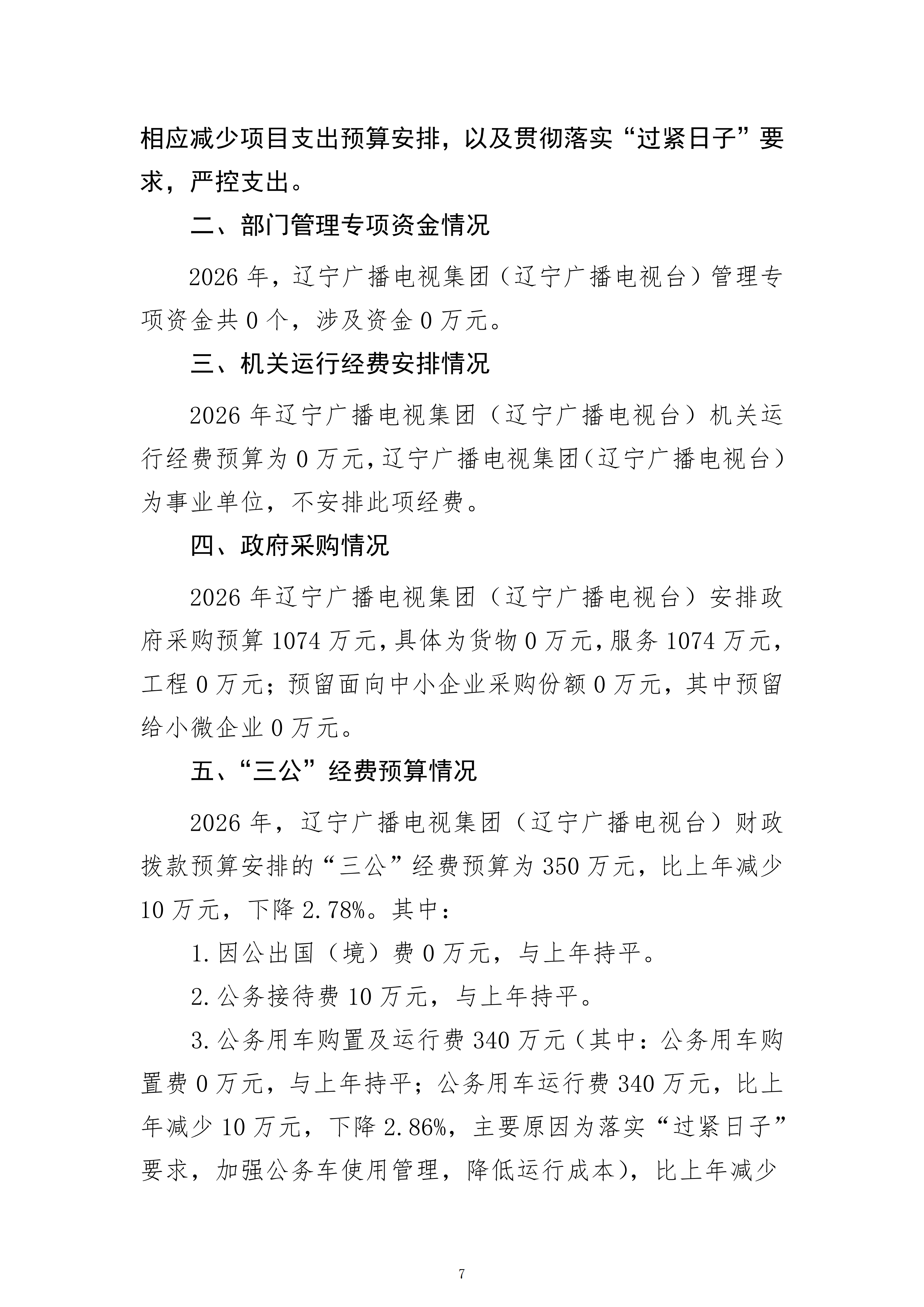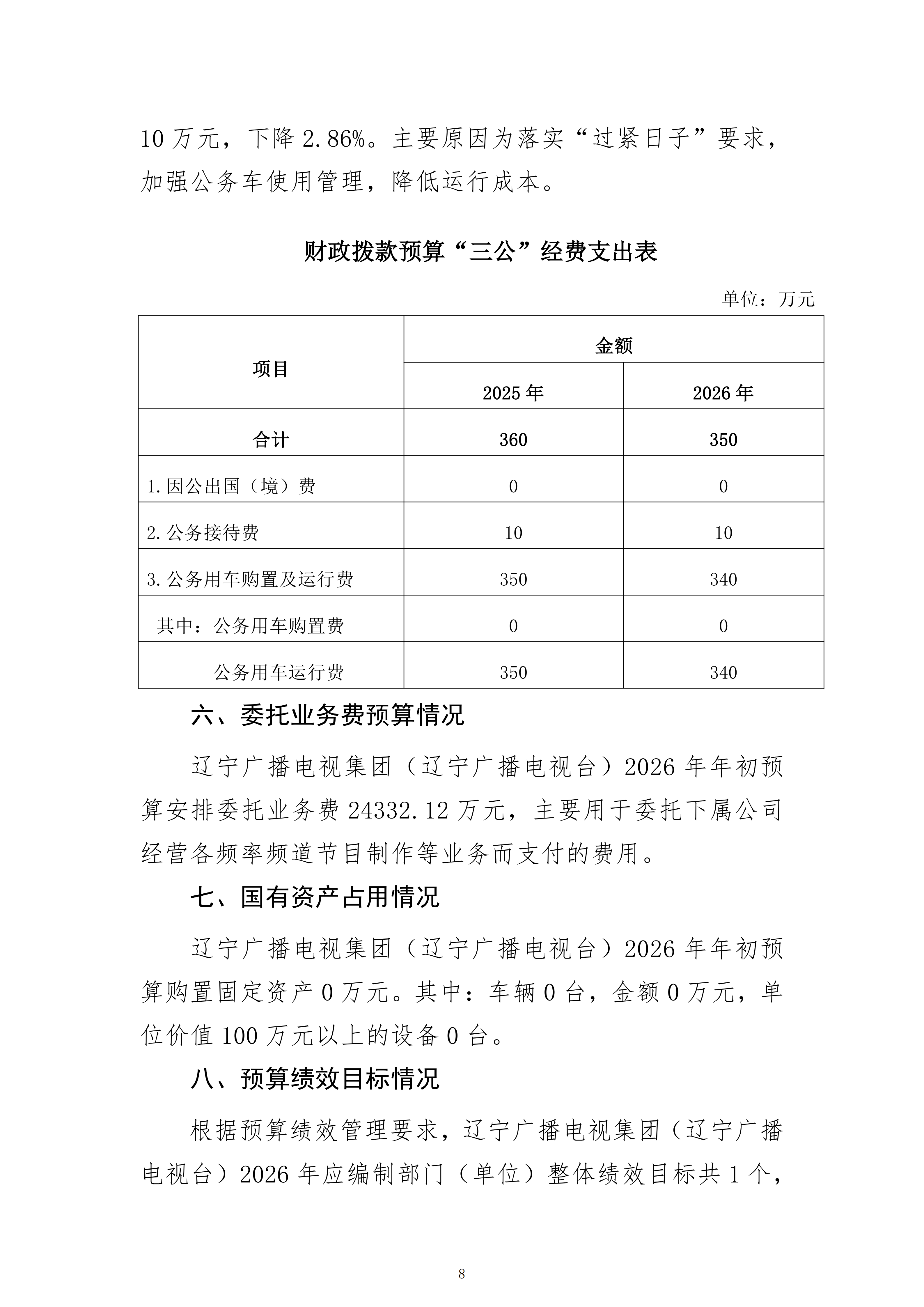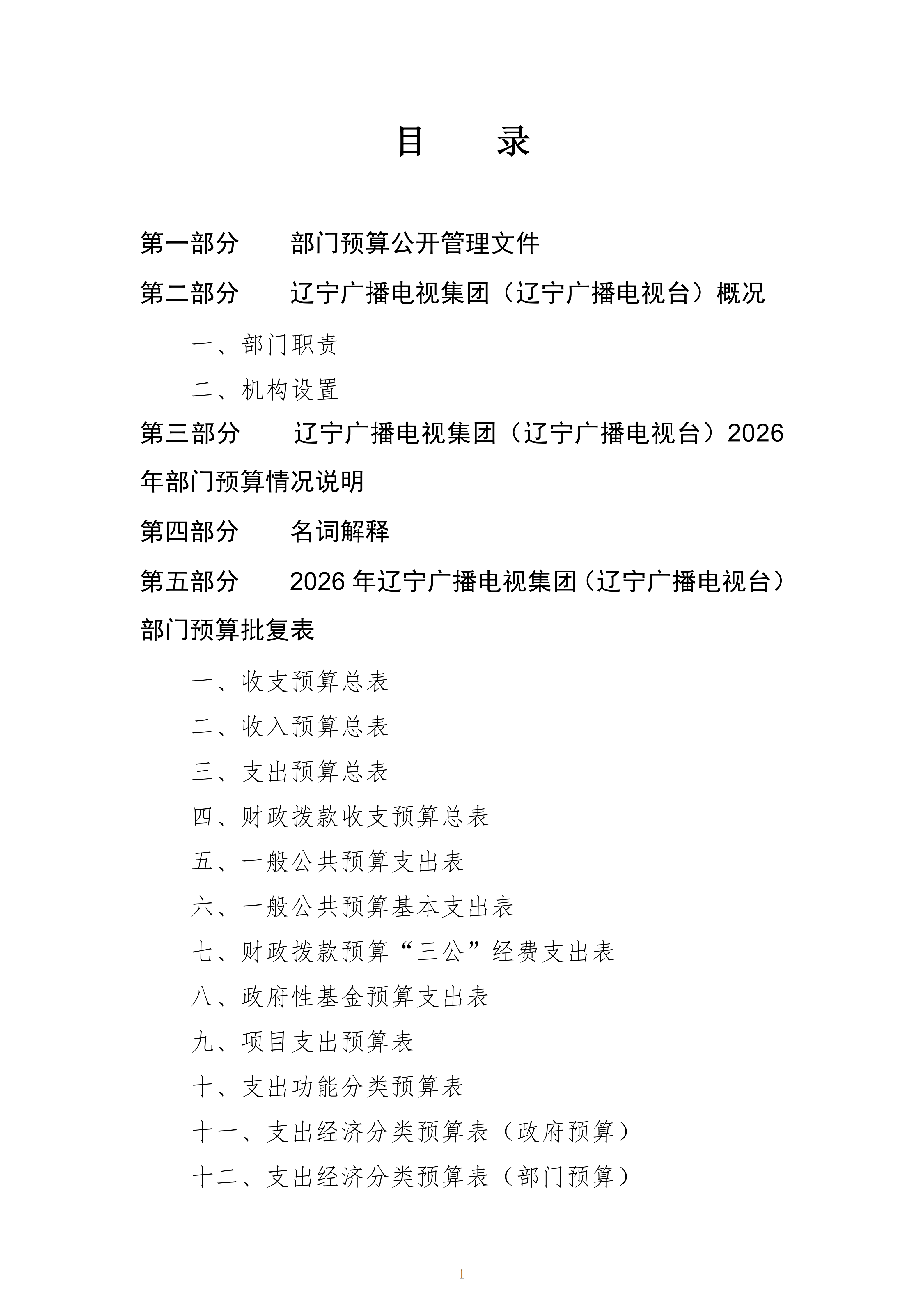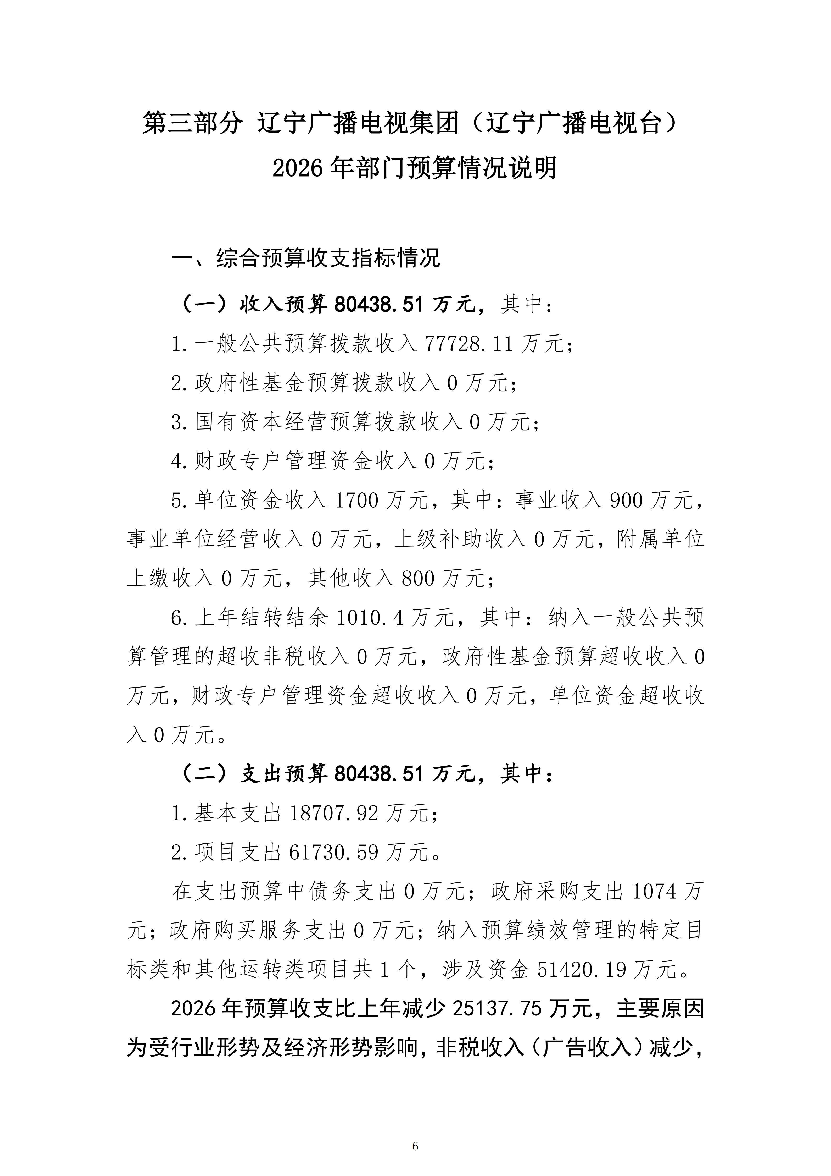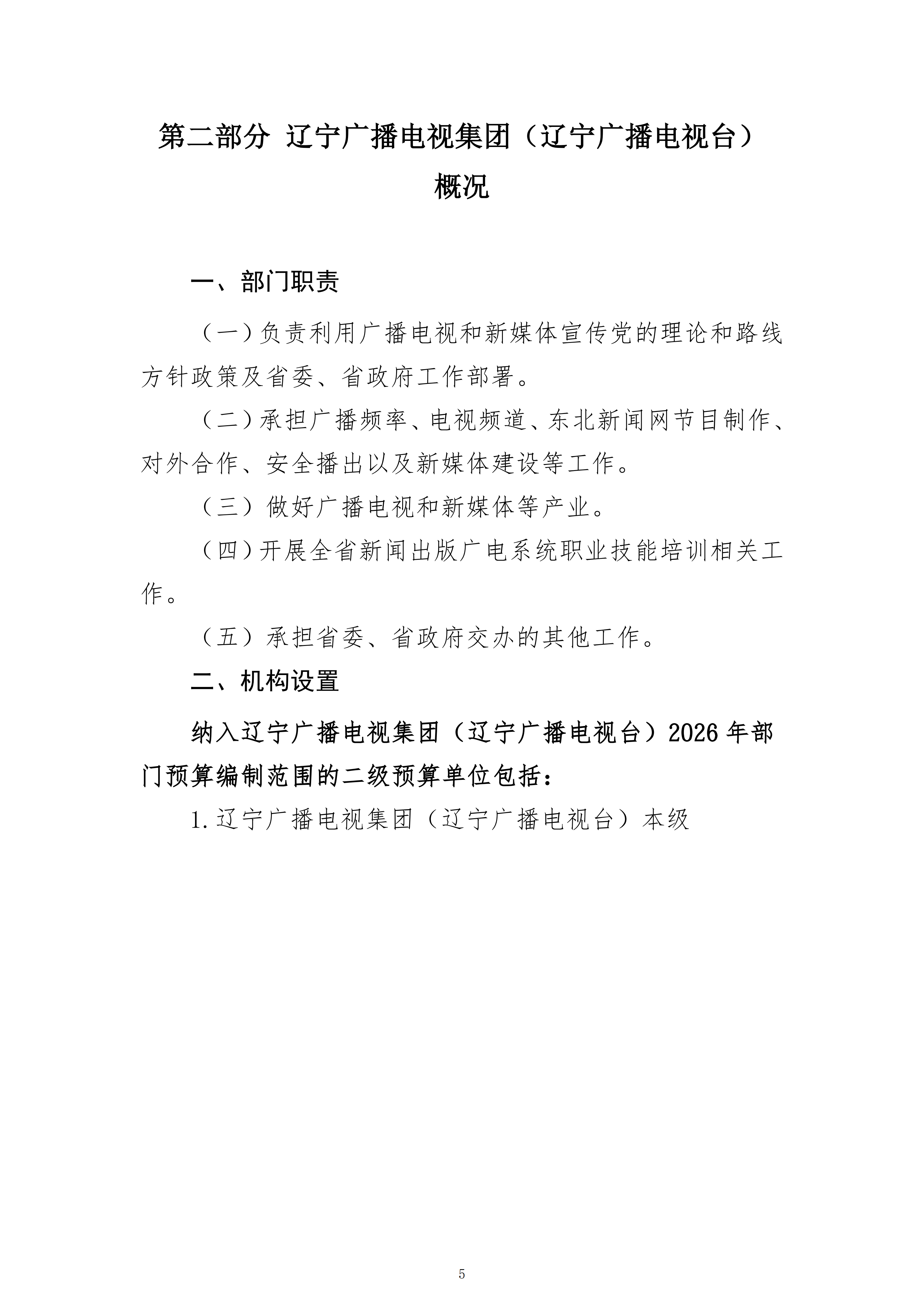 辽宁广播电视集团(辽宁广播电视台)2026年度部门预算