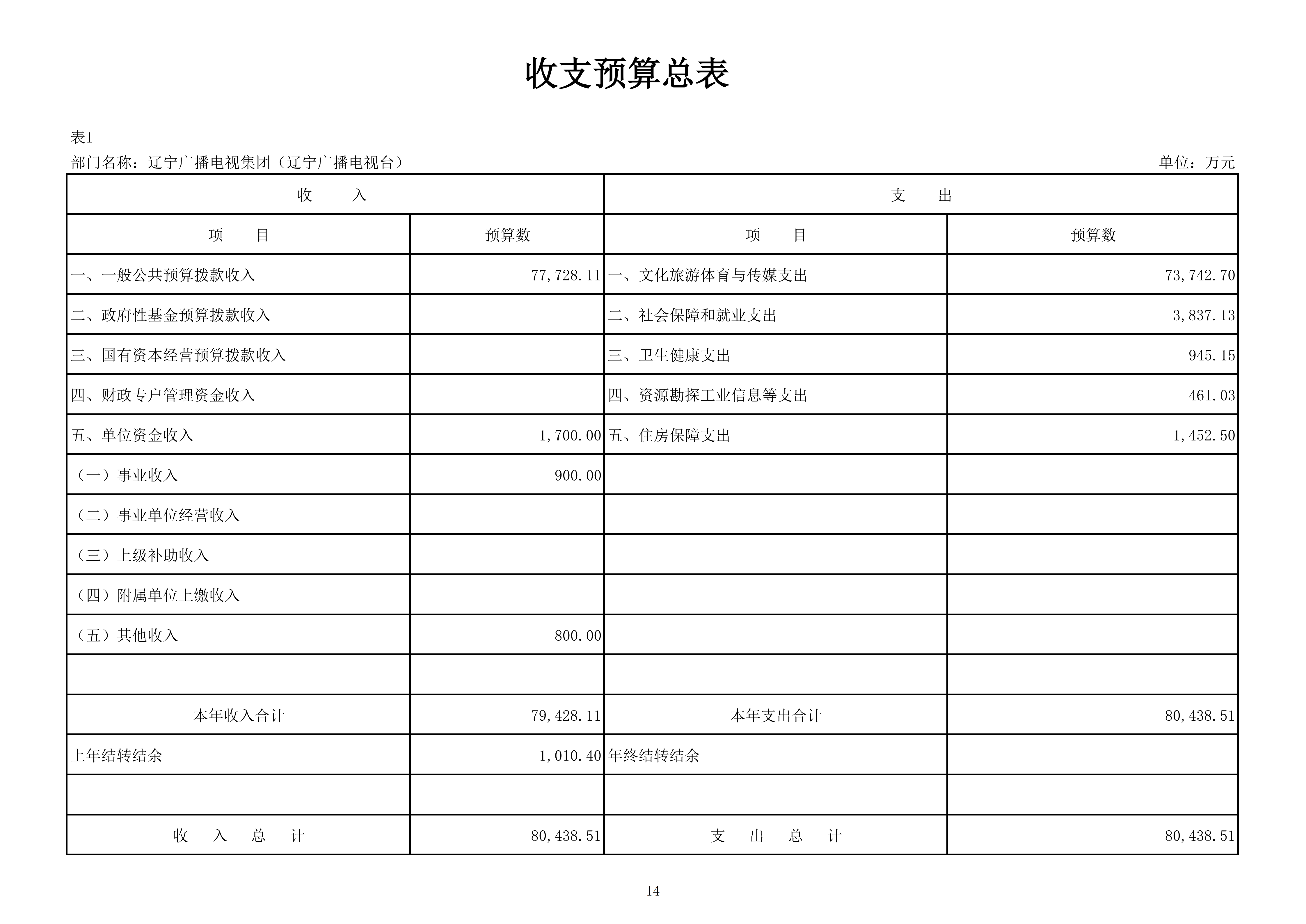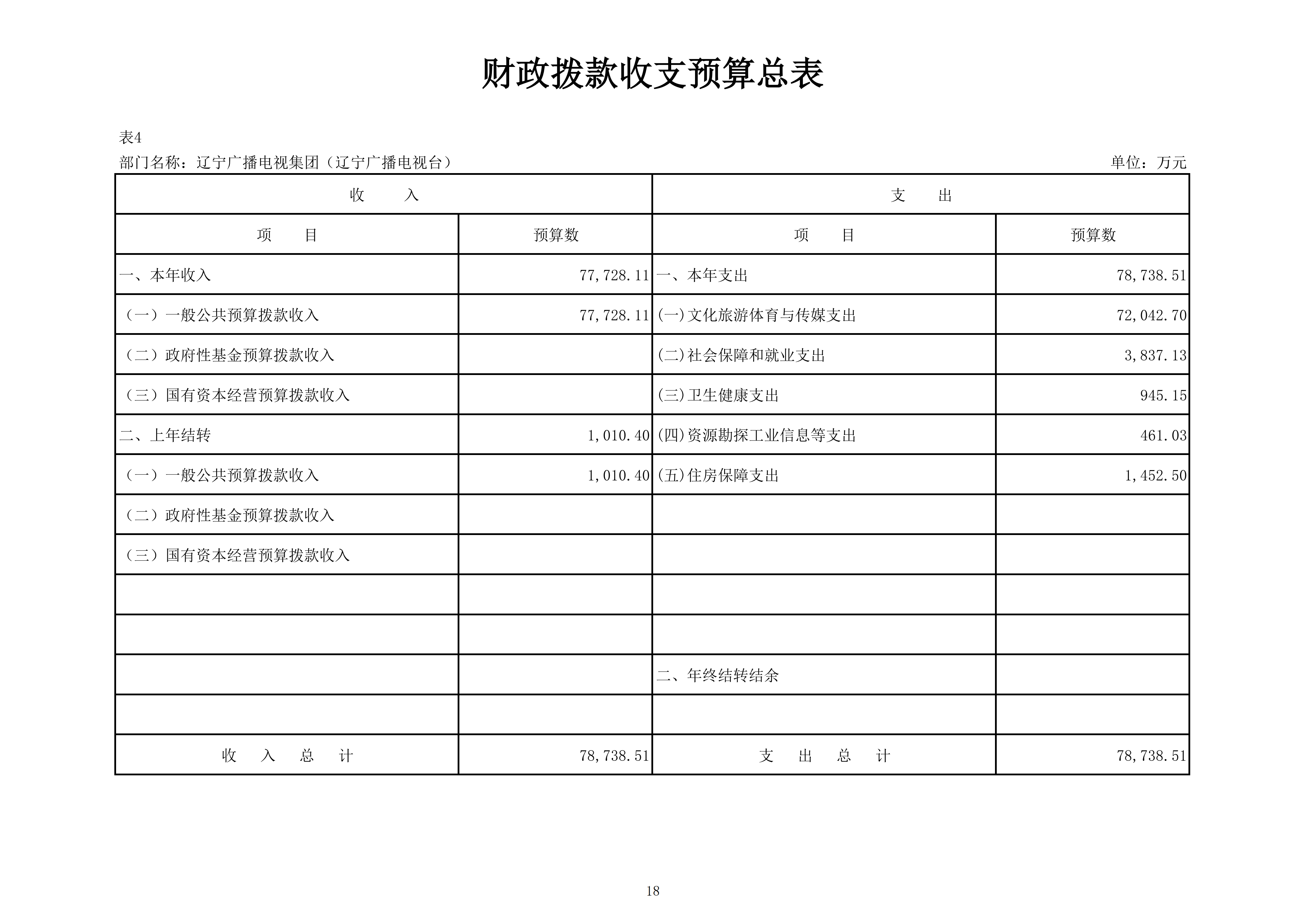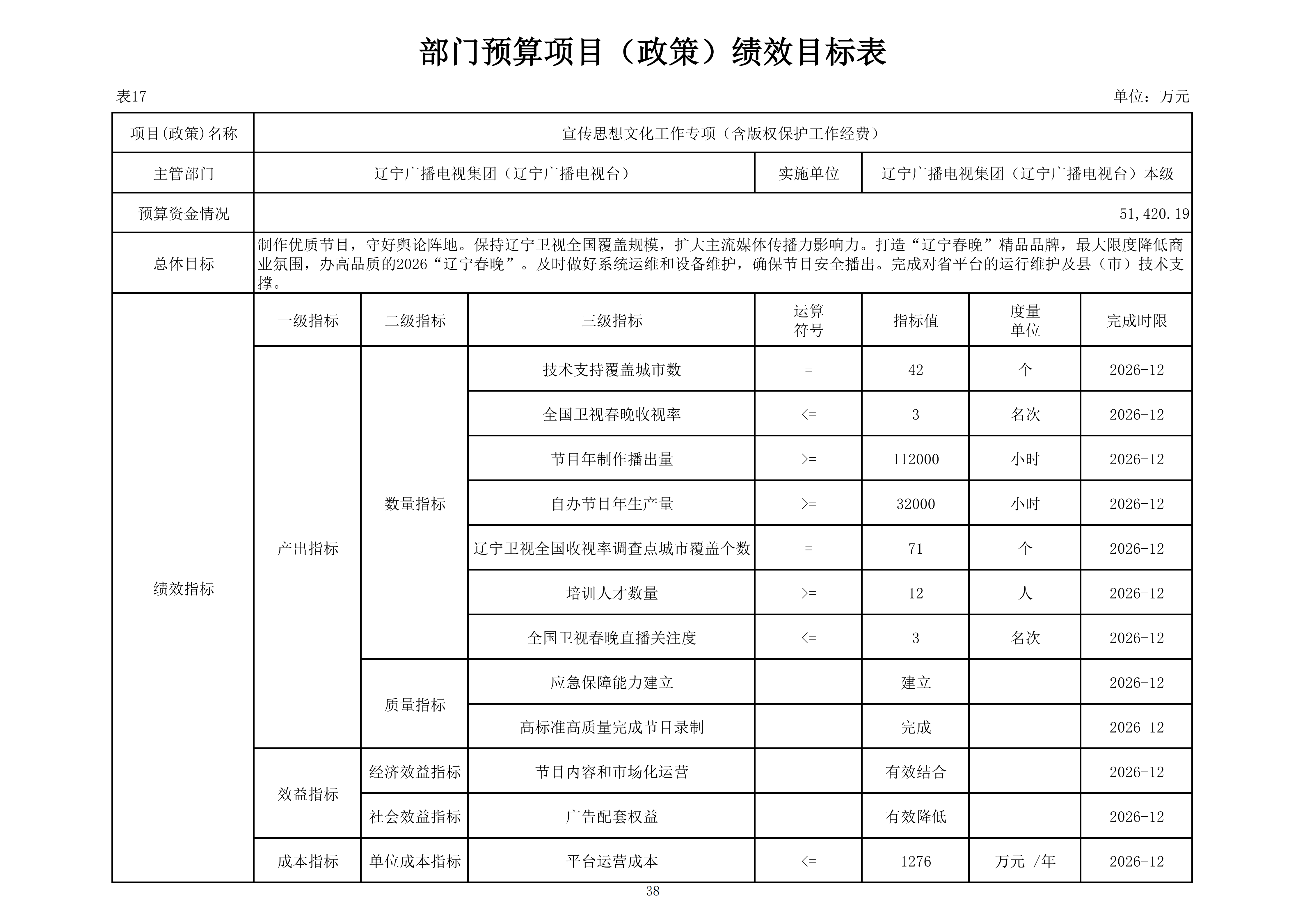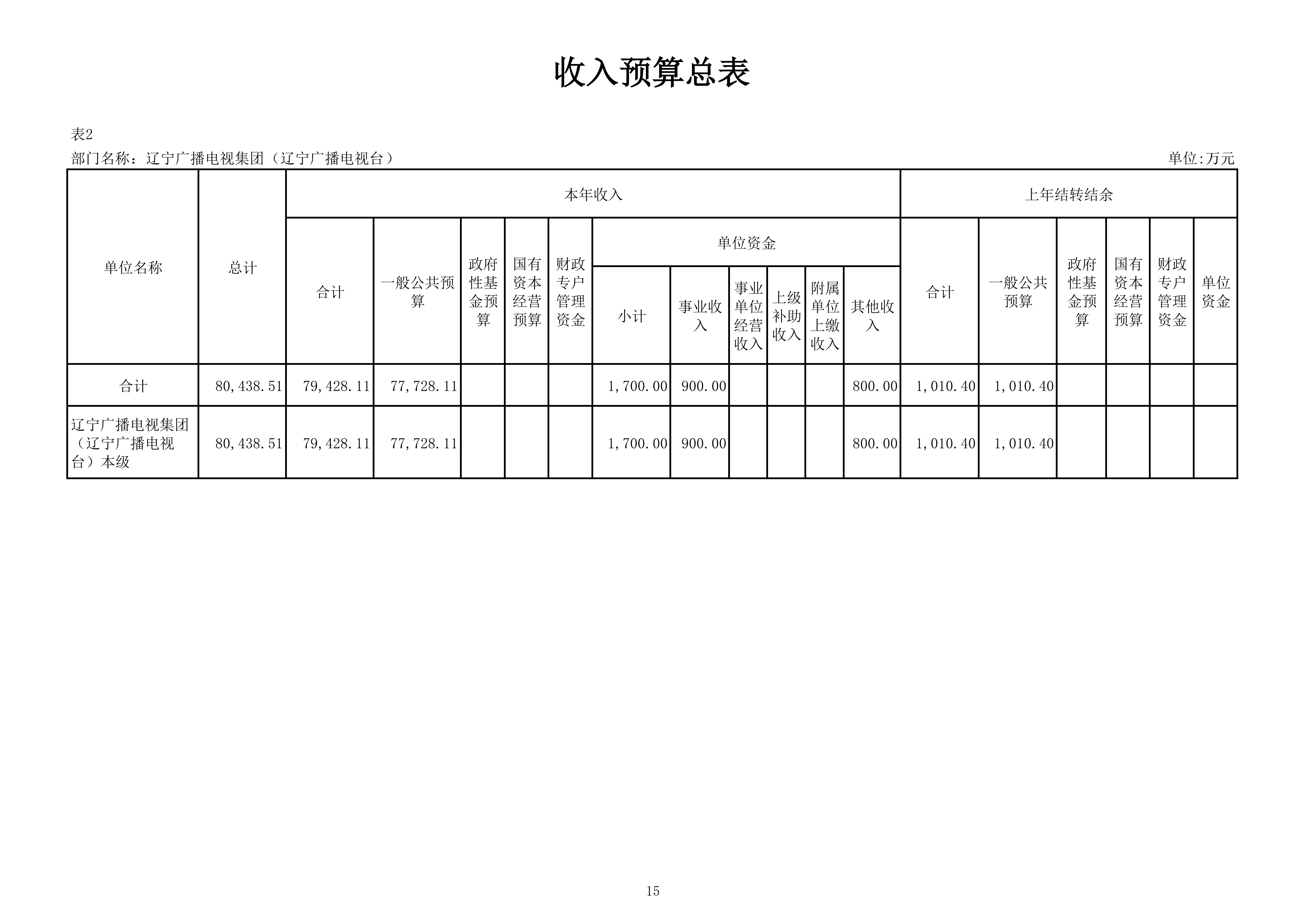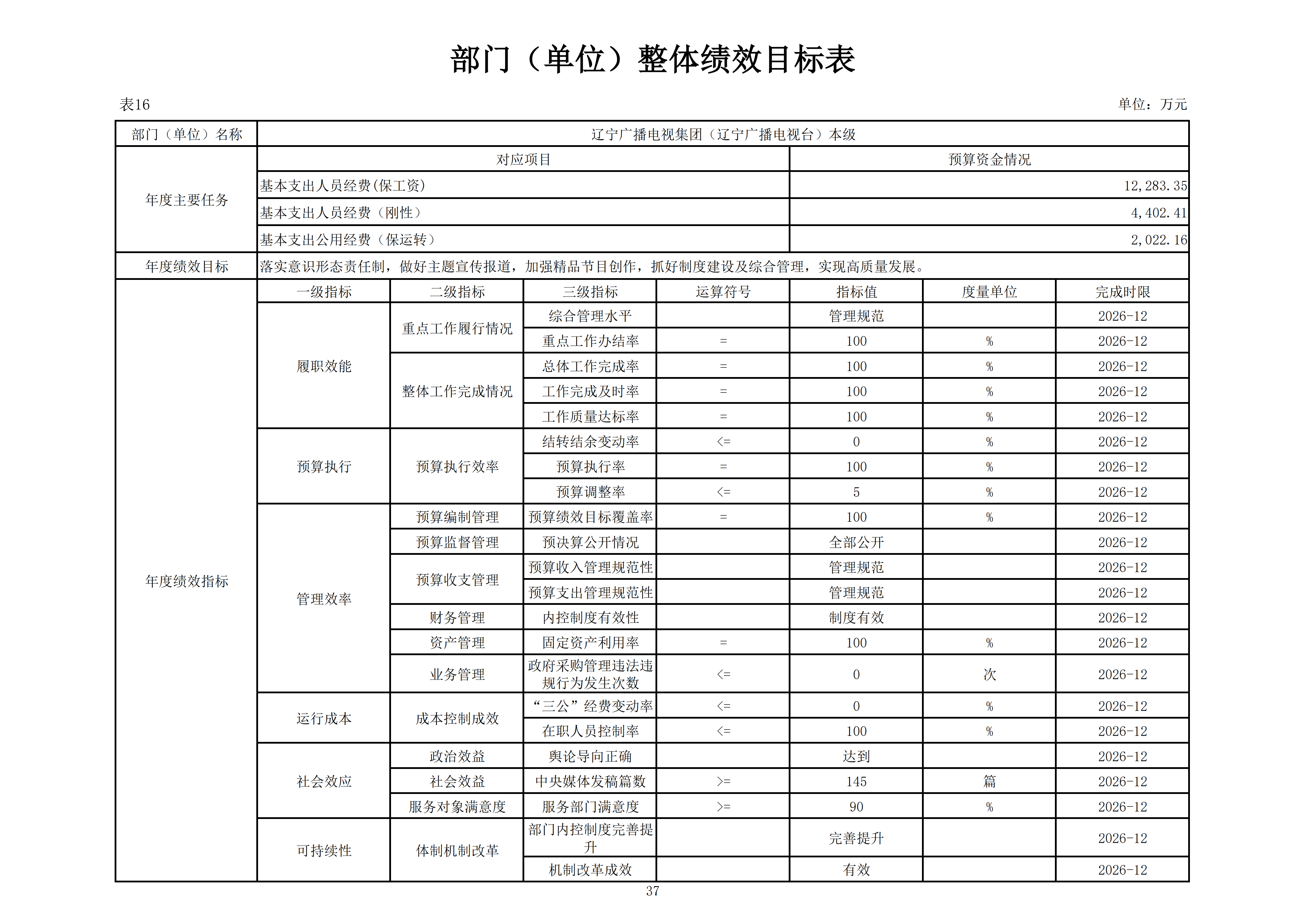 辽宁广播电视集团(辽宁广播电视台)2026年度部门预算